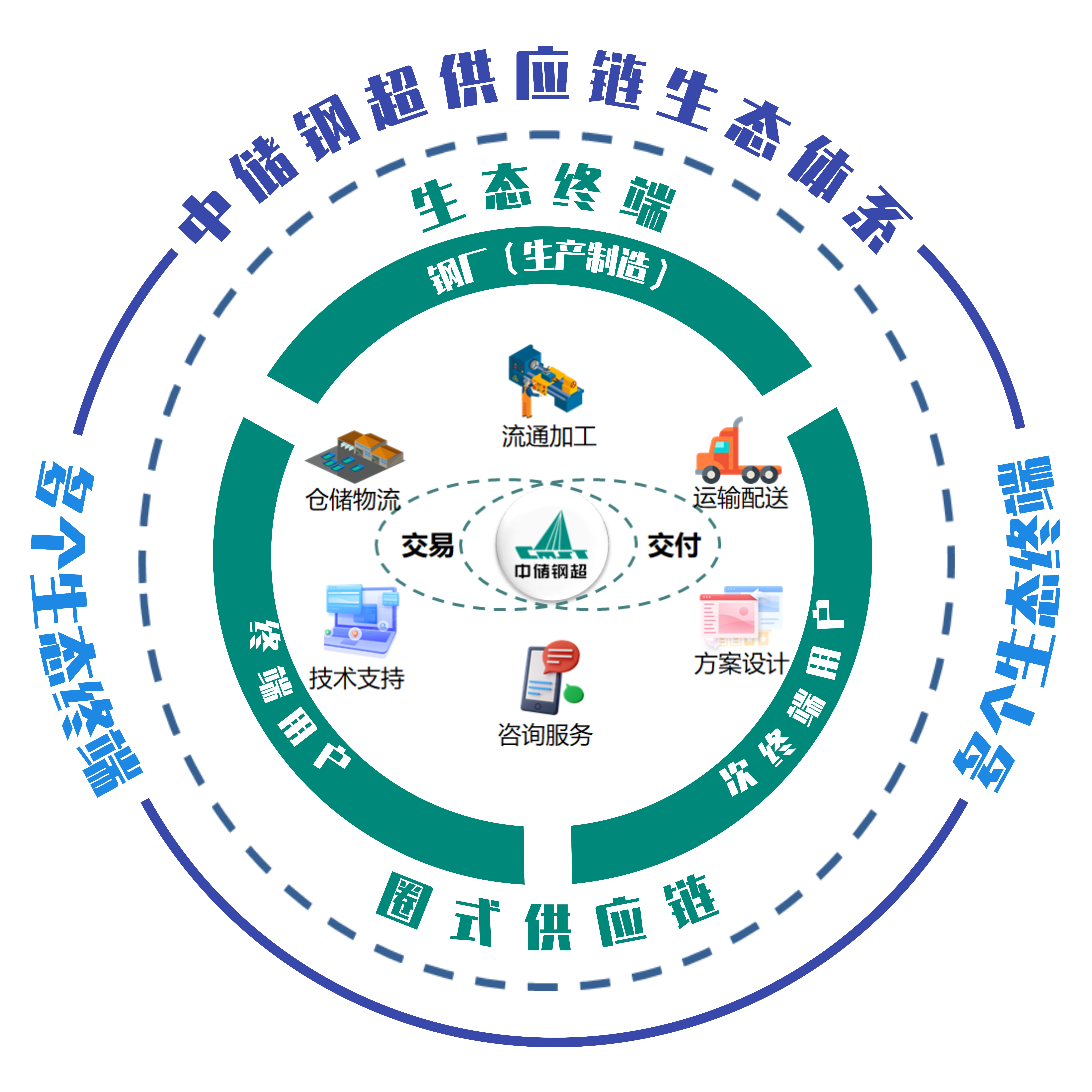 中储钢超是钢铁产品供应链一体化服务平台。依托数字化仓库,应用互联网、大数据技术,线上线下同步运行,提供交易服务、物流服务、加工服务、信息服务,形成了融合钢厂、用户、贸易商、次终端、服务商的行业生态。